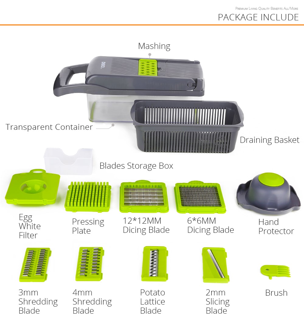 - ❤ One Tap To Unlock Multiple Skills - Multiple Vegetable Chopper Blades allow you to chop, cut, slice, dice, grate, shred easily. This vegetable chopper gives you all kinds of cutting tips at your fingertips.